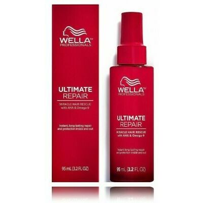 Wella Professionals ULTIMATE REPAIR Miracle Hair Rescue viegls, izsmidzināms, neskalojams produkts, kas novērš matu bojājumus gan no iekšpuses, gan no ārpuses tikai 90 sekundēs. Tas intensīvi stiprina un nogludina matus un sniedz noturīgus rezultātus. ULTIMATE REPAIR līnija ar patentētu tehnoloģiju, kuras sastāvā ir alfa hidroksi skābes (AHA) un Omega-9. Šo sastāvdaļu kombinācija spēj atjaunot visus matu tipus un tekstūras no iekšpuses un ārpuses. Izsmalcināts aromāts. Vegāns. "Cruelty free". Dermatoloģiski pārbaudīts.